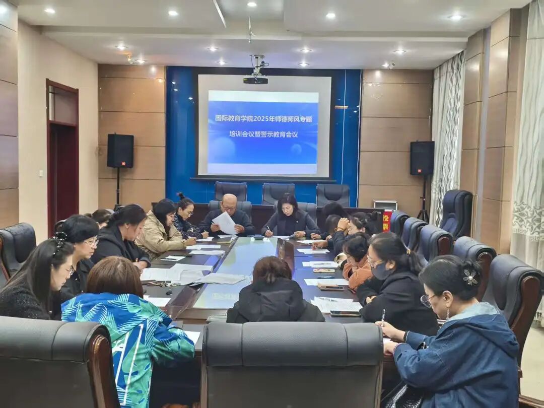 为进一步引导教职工坚守廉洁从教、立德树人初心, 按照学校的总体安排,9月24日,国际教育学院在一楼会议室召开2025年师德师风专题培训会议暨警示教育会议,全体教职工参会,会议由党总支书记胡颖主持。