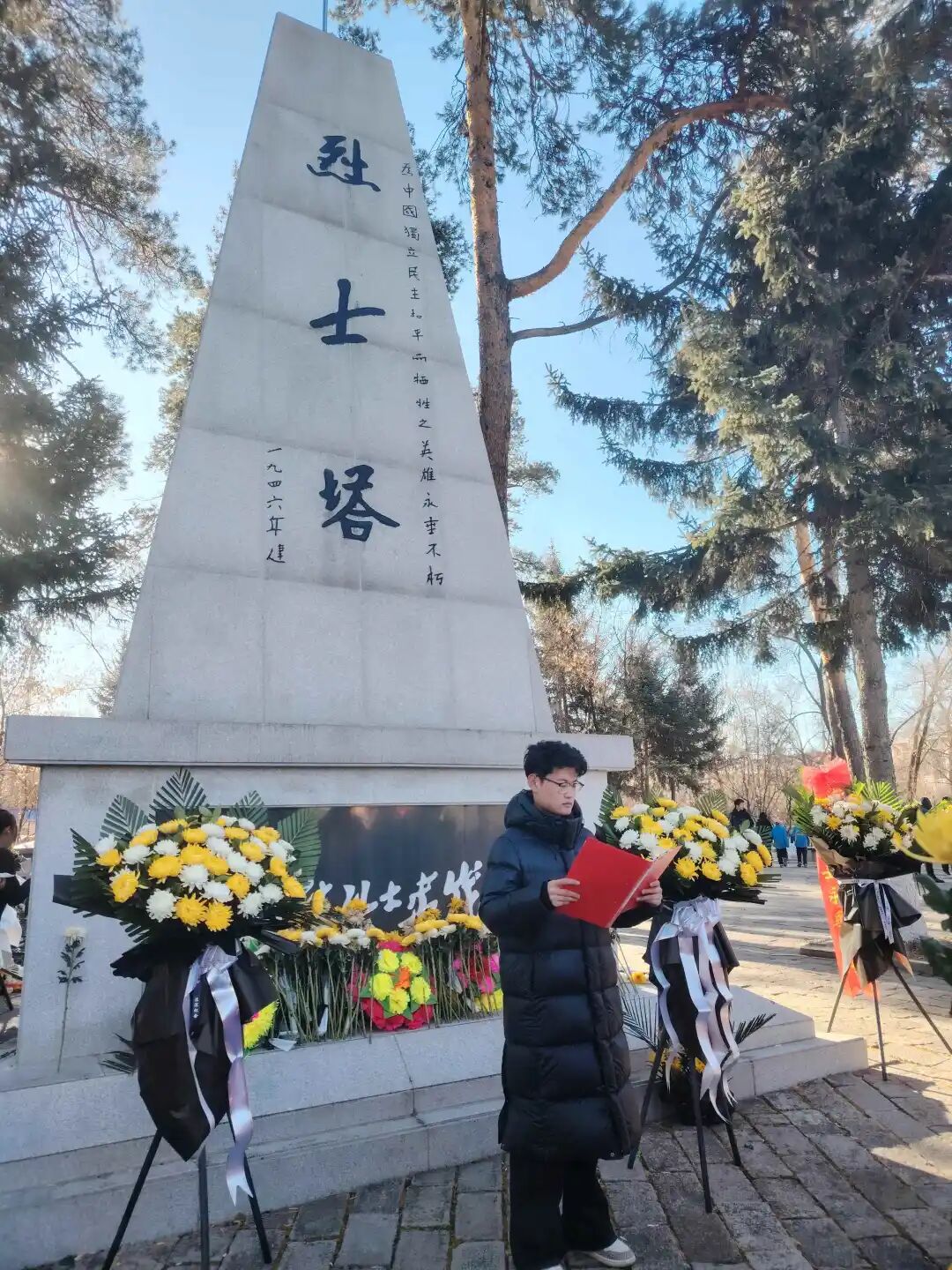 烈士纪念碑前,全体肃立默哀,向革命先烈敬献鲜花、深情缅怀革命先辈为民族解放事业抛头颅、洒热血的崇高气节。
